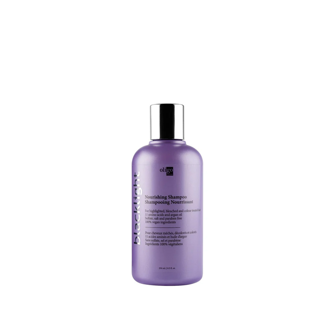 Le Shampooing nourrissant Blacklight d’Oligo est conçu pour chouchouter tes cheveux blonds, méchés ou balayage. Il nettoie en douceur tout en aidant à maintenir une fibre hydratée, souple et lumineuse, sans alourdir.