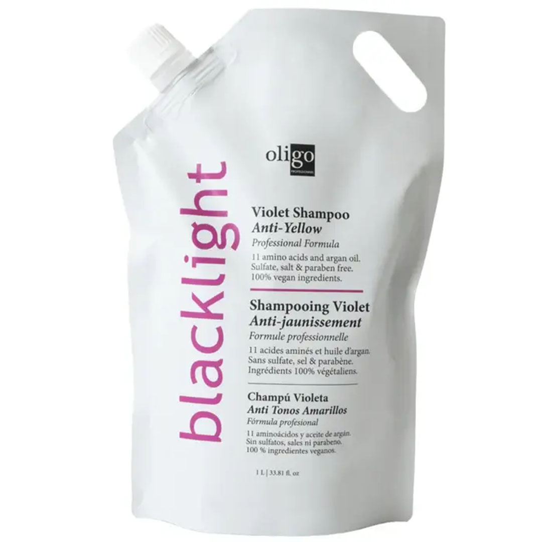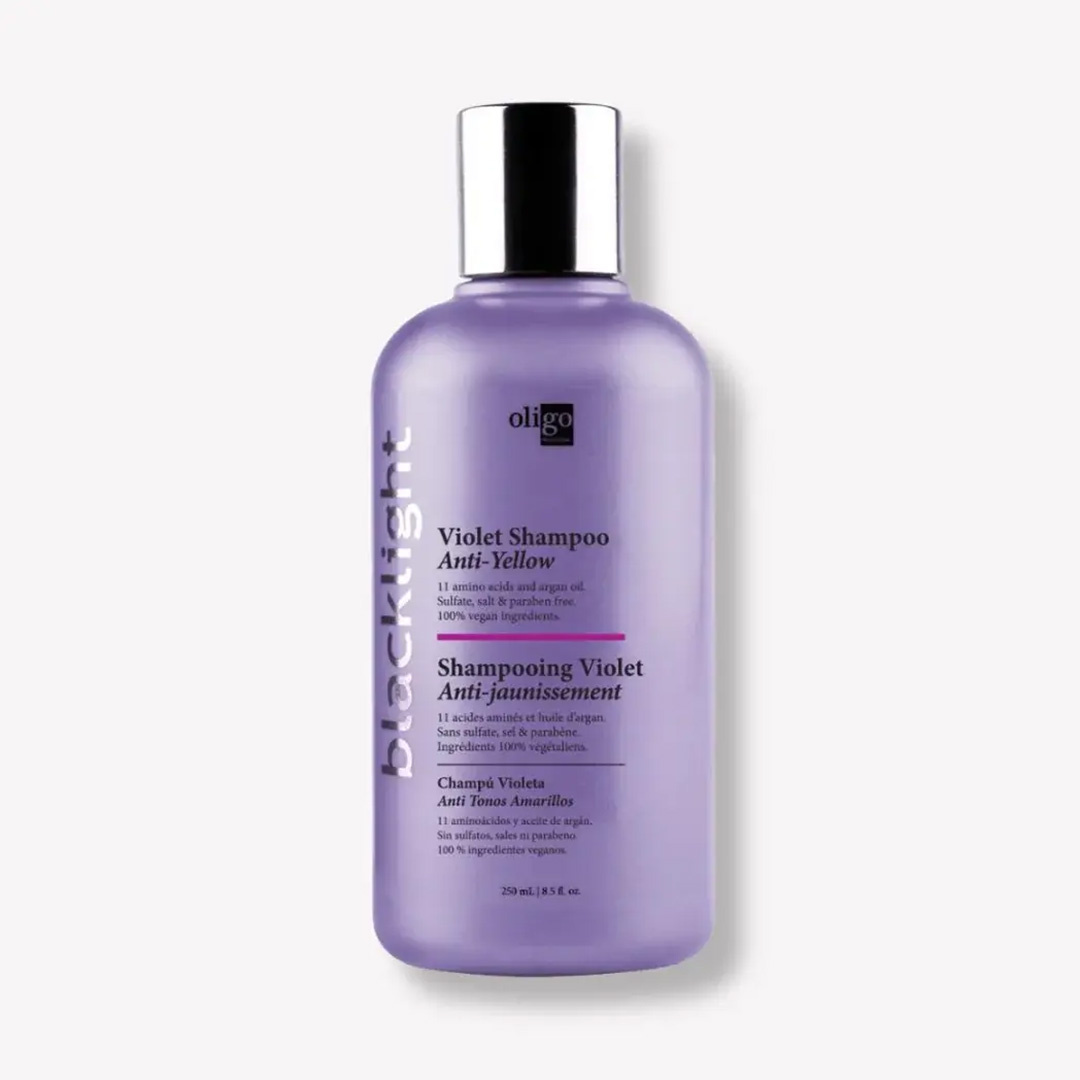 Le Shampooing violet anti-jaunissement Blacklight d’Oligo est pensé pour garder tes blonds nets, froids et lumineux plus longtemps. Sa formule pigmentée dépose des nuances violettes qui aident à neutraliser les reflets jaunes indésirables tout en nettoyant délicatement la fibre.