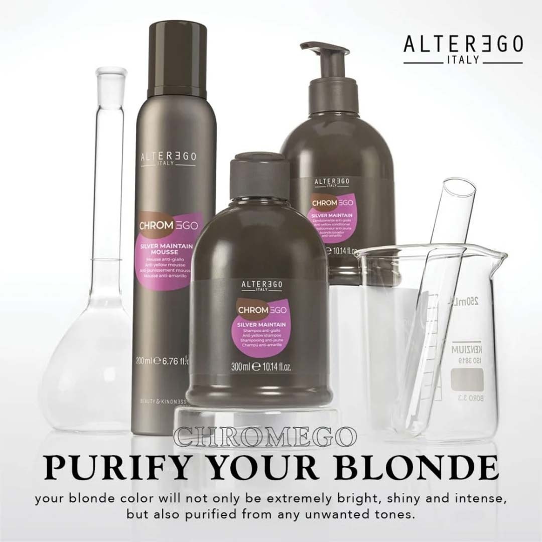 Chromego | Silver Maintain | Shampooing Anti-Jaune - Neutralise les reflets jaunes et ravive les blonds et gris