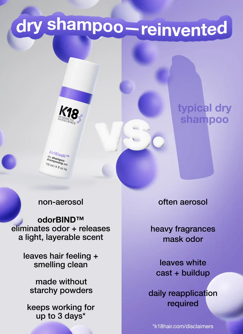 Le Shampooing Sec AirWash de K18 est l’allié parfait pour espacer tes lavages sans sacrifier le look ni le confort. Sa formule légère aide à absorber l’excès de sébum au niveau des racines, à rafraîchir la chevelure et à redonner du volume, sans laisser de résidus visibles ni de fini poudreux. Idéal pour les matins pressés, les journées post-entraînement ou pour prolonger la tenue de ton brushing.