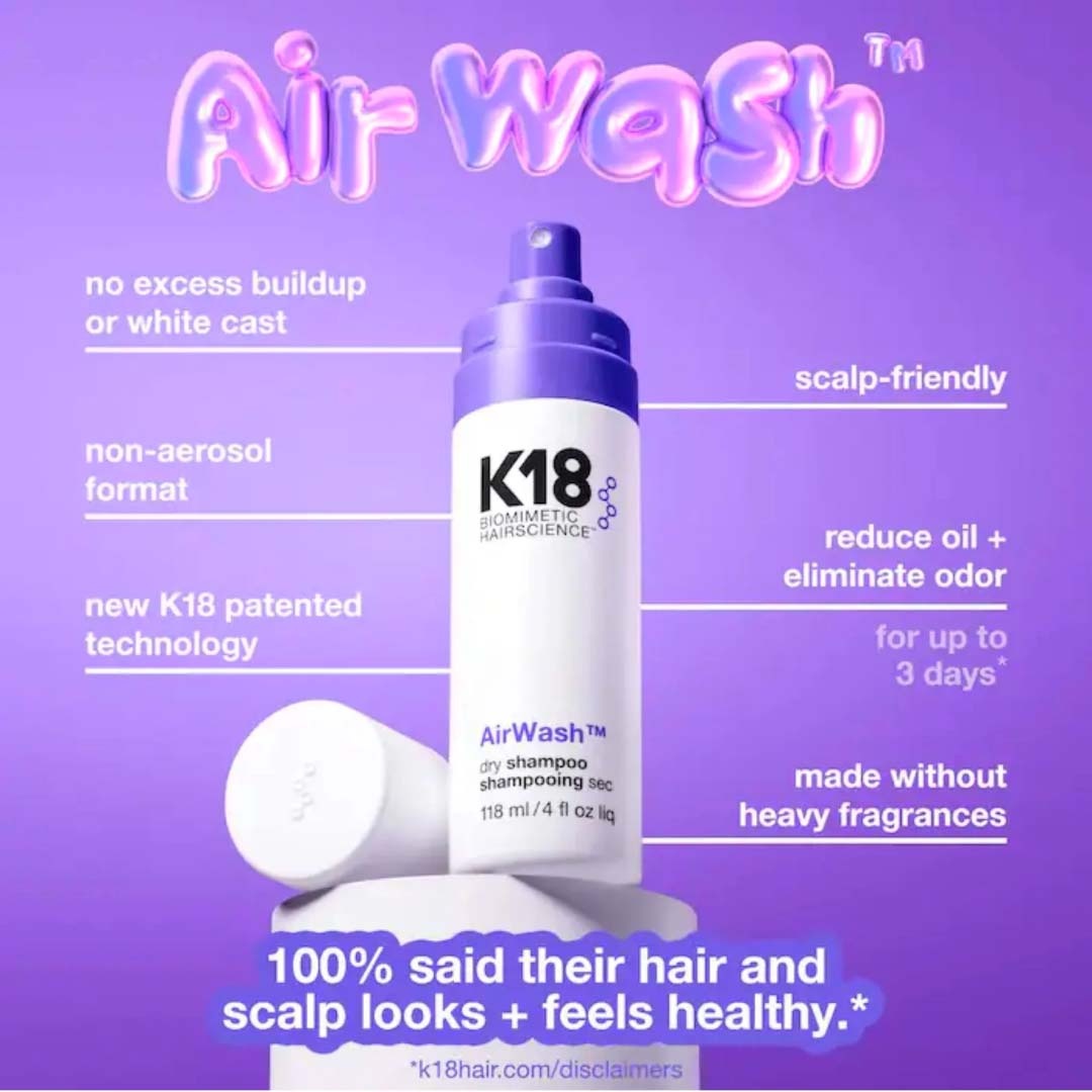 Le Shampooing Sec AirWash de K18 est l’allié parfait pour espacer tes lavages sans sacrifier le look ni le confort. Sa formule légère aide à absorber l’excès de sébum au niveau des racines, à rafraîchir la chevelure et à redonner du volume, sans laisser de résidus visibles ni de fini poudreux. Idéal pour les matins pressés, les journées post-entraînement ou pour prolonger la tenue de ton brushing.