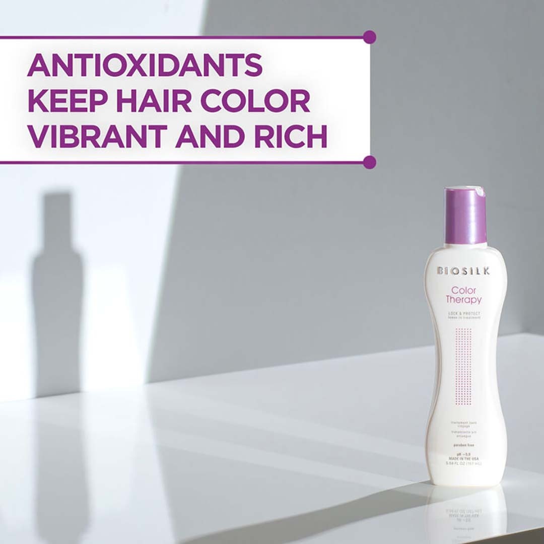 Color Therapy Lock & Protect is a leave-in treatment designed to preserve color vibrancy while hydrating the hair. It helps protect the hair fiber from external aggressors while leaving hair soft, shiny, and easier to manage.