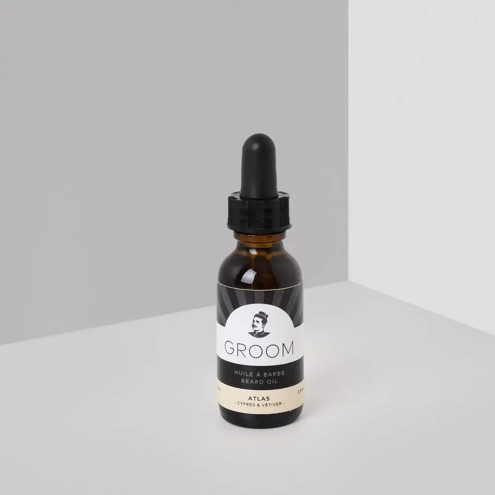 GROOM Beard Oil is a nourishing treatment designed to enhance and maintain all types of beard. Enriched with a blend of natural oils, this oil moisturizes the skin under the beard, while softening and disciplining the hair for a well-groomed look and a feeling of comfort all day long. It also leaves a subtle fragrance that lasts without being overpowering.
