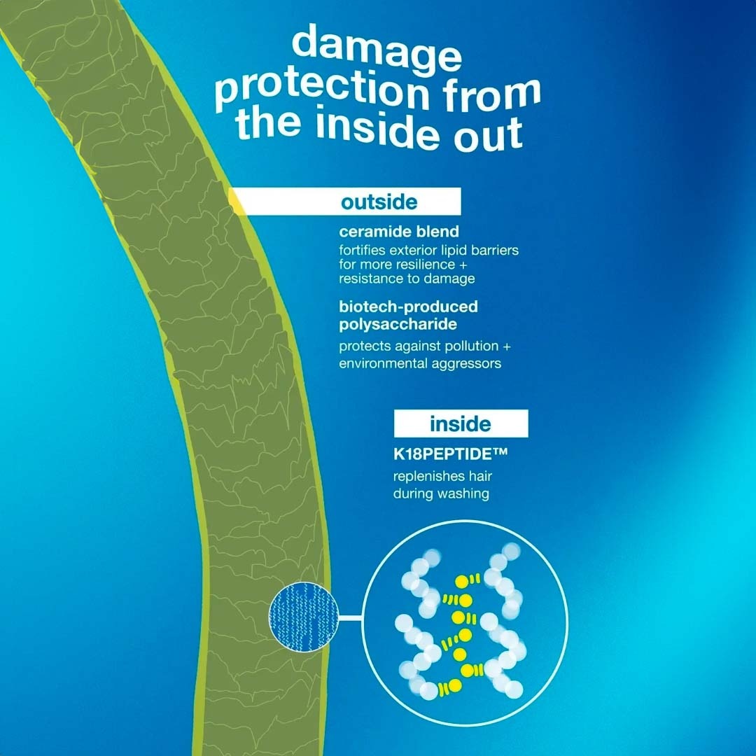 After using the Damage Shield pH Protective Shampoo, gently squeeze excess water from hair. Apply conditioner to mid-lengths and ends, avoiding the roots. Leave on for 2–3 minutes, then add a little water to emulsify and rinse thoroughly. Use at every wash or as needed, then follow with your favorite K18 leave-in care.