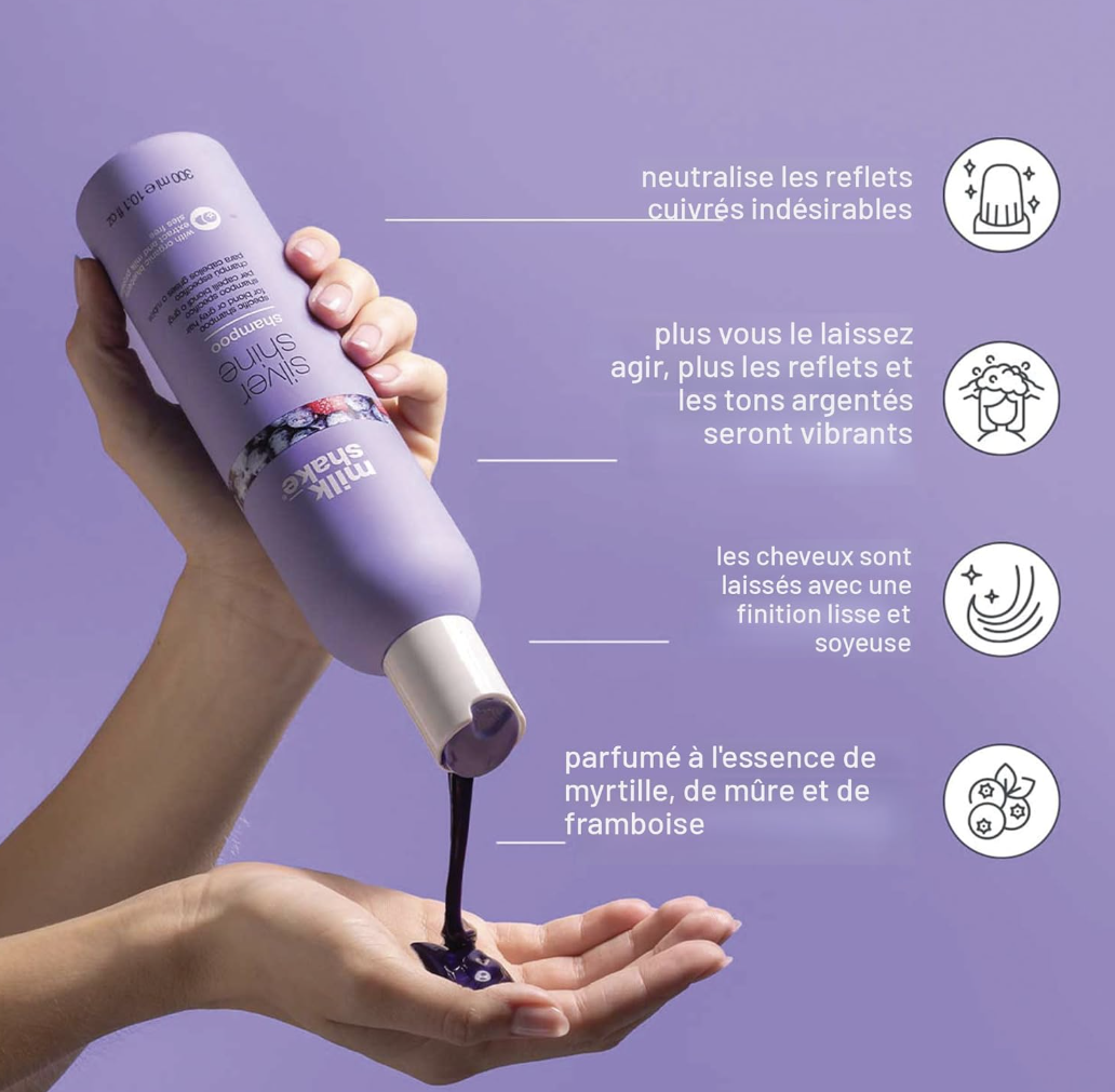 Silver Shine Shampoo for Blonde or Grey Hair is designed to enhance and maintain cool blonde, grey or white tones. Its violet pigments help counteract unwanted yellow hues while gently cleansing the hair. The result is brighter, fresher-looking color with enhanced shine and purity.