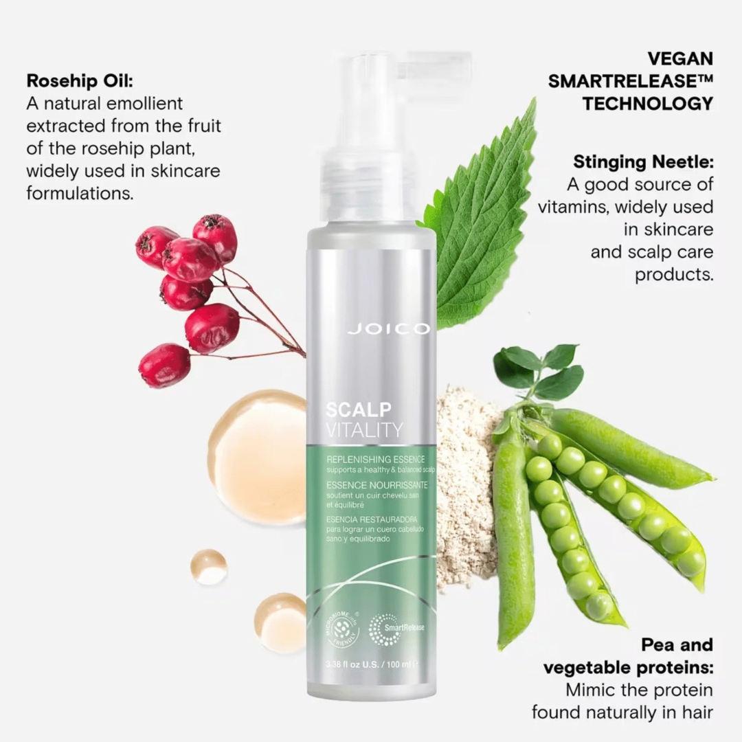 Scalp Vitality Replenishing Essence is a targeted treatment designed to restore balance and vitality to the scalp. Its lightweight formula absorbs quickly to deeply nourish, soothe discomfort, and support a healthy scalp foundation. Ideal for dry, sensitive, or depleted scalps.